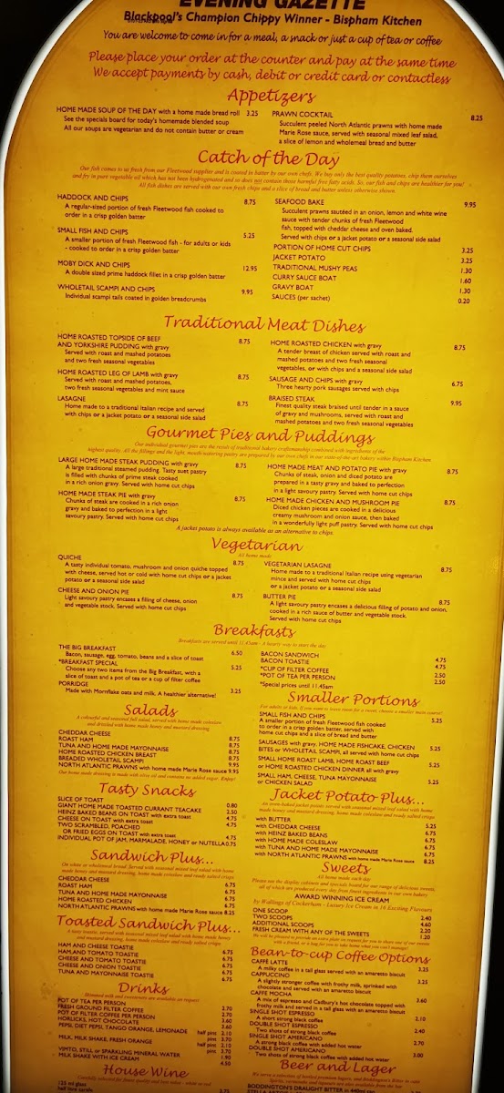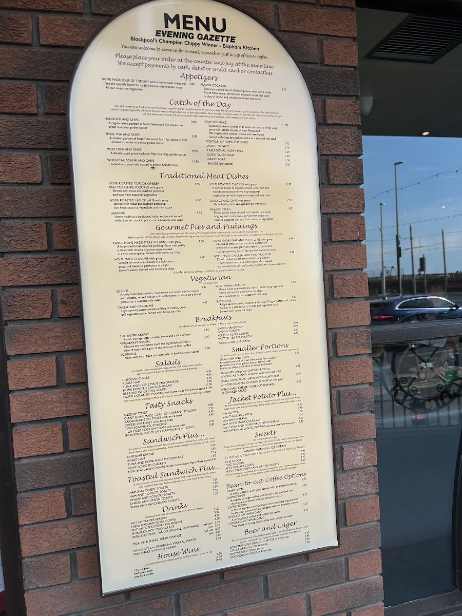 In comparison to chain restaurants or more polished fish and chip shops in town, Bispham Kitchen maintains an authentic charm. If you're looking for a reliable, no-frills British meal in Blackpool, this menu delivers consistency, value, and a satisfying sense of familiarity.